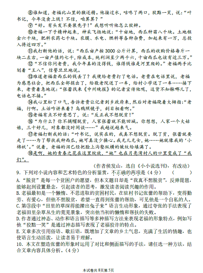 2024-2025学年河南新乡七年级下册语文期末真题(图片版)(5)