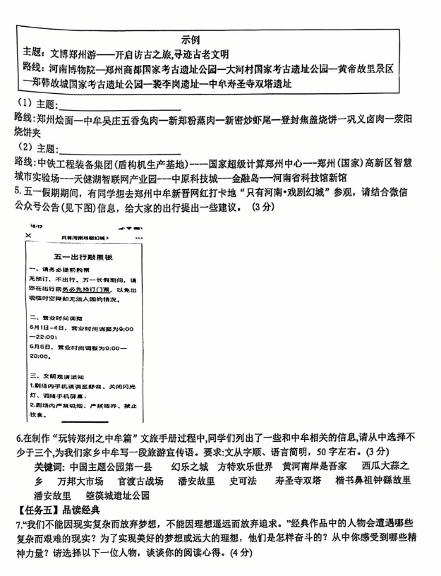 2024-2025学年河南郑州四中七年级下册语文期末真题(图片版)(2)