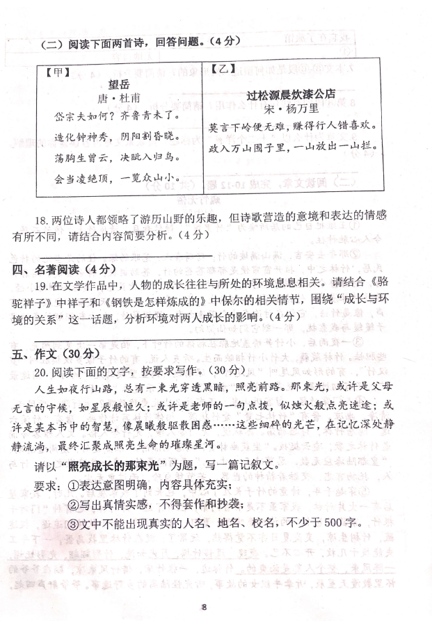 2024-2025学年河南郑州中原区七年级下册语文期末真题(图片版)(8)