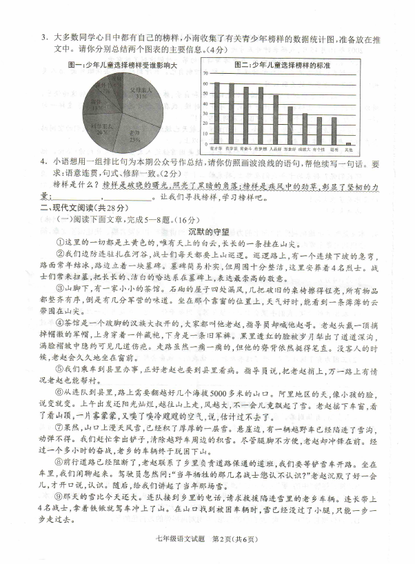 2024-2025学年河南驻马店平舆县七年级下册语文期末真题(图片版)(2)