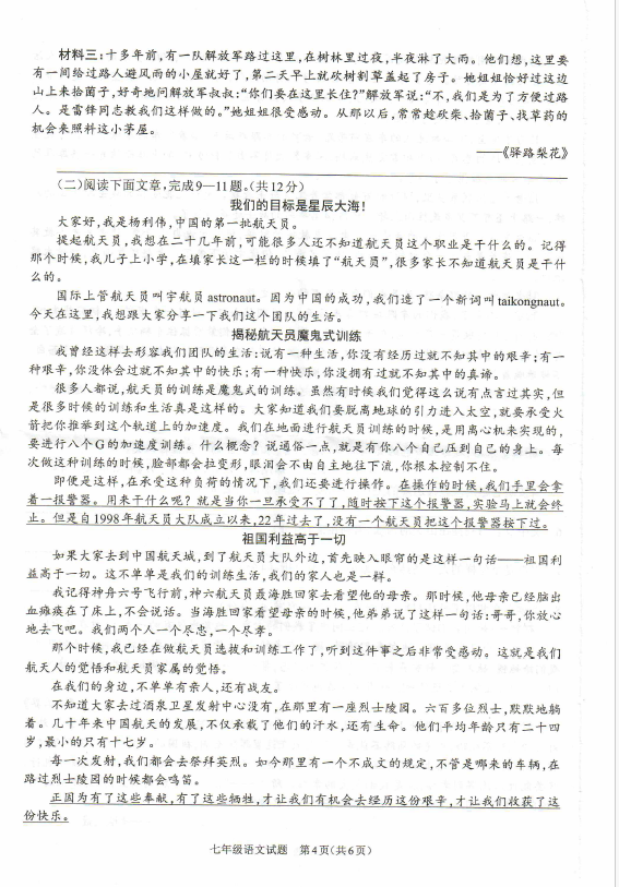 2024-2025学年河南驻马店平舆县七年级下册语文期末真题(图片版)(4)