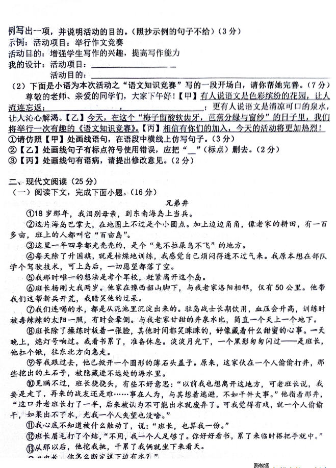 2024-2025学年河南驻马店驿城区七年级下册语文期末真题(图片版)(2)