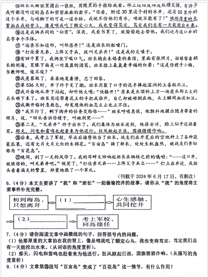 2024-2025学年河南驻马店驿城区七年级下册语文期末真题(图片版)(3)
