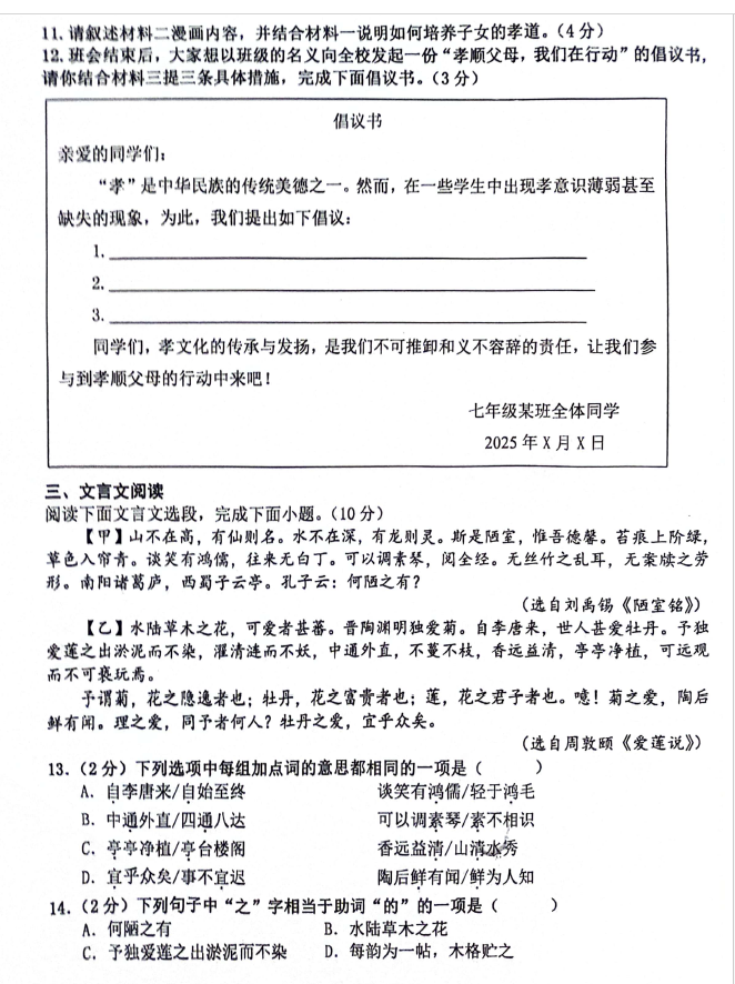 2024-2025学年河南驻马店驿城区七年级下册语文期末真题(图片版)(5)