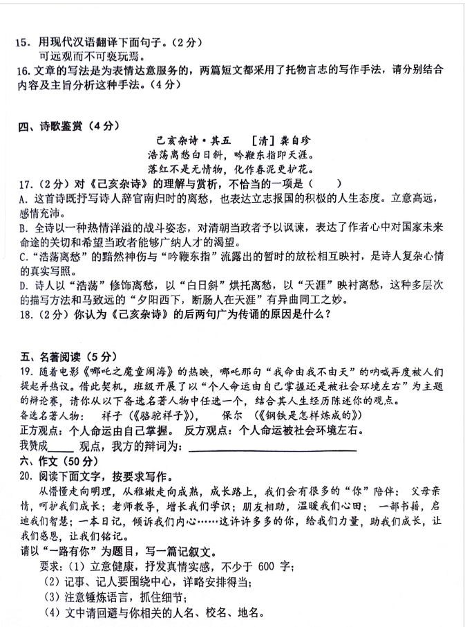 2024-2025学年河南驻马店驿城区七年级下册语文期末真题(图片版)(6)