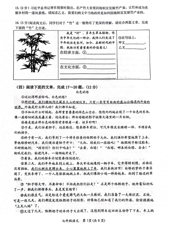 2024-2025学年湖北安陆七年级下册语文期末真题(图片版)(5)