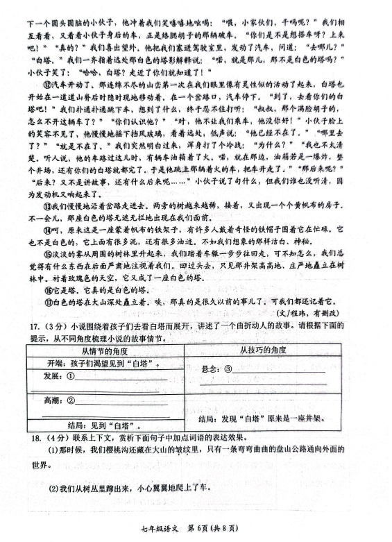 2024-2025学年湖北安陆七年级下册语文期末真题(图片版)(6)