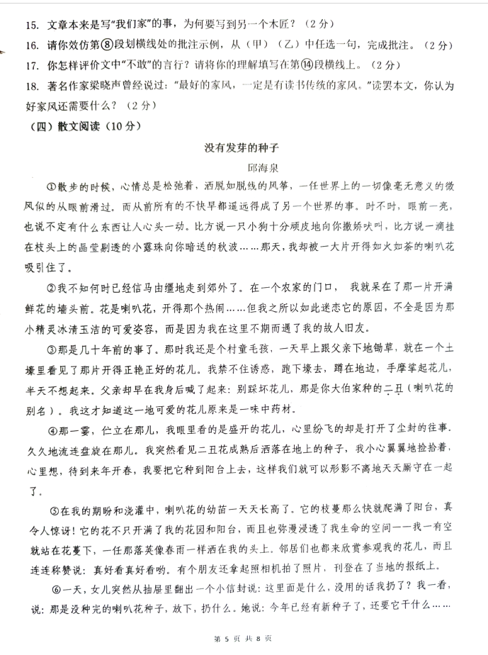 2024-2025学年湖北黄冈浠水县七年级下册语文期末真题(图片版)(5)