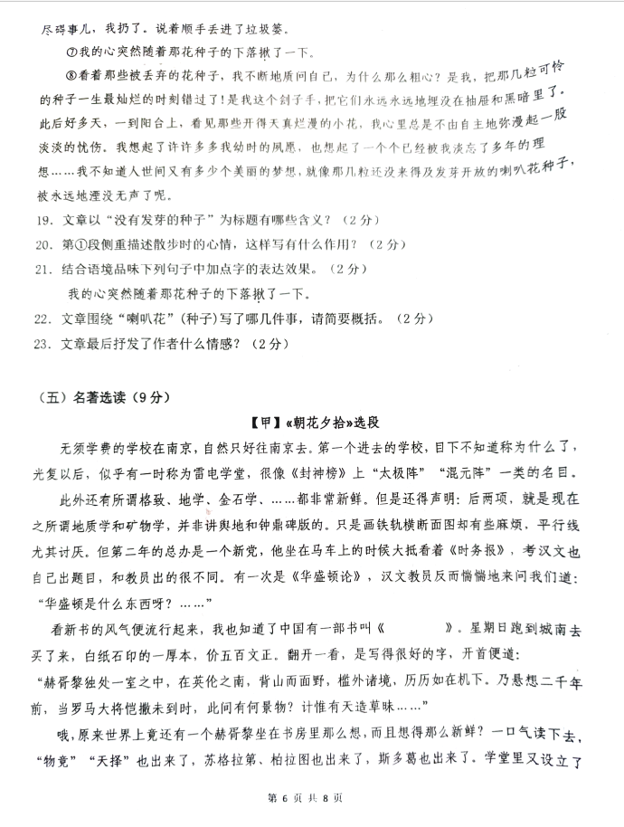 2024-2025学年湖北黄冈浠水县七年级下册语文期末真题(图片版)(6)