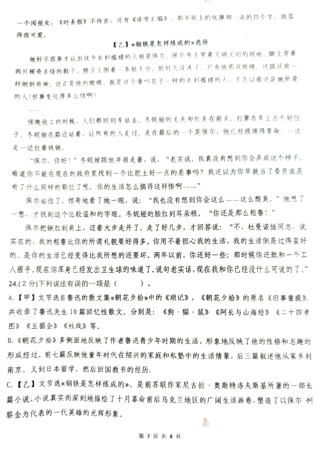 2024-2025学年湖北黄冈浠水县七年级下册语文期末真题(图片版)(7)