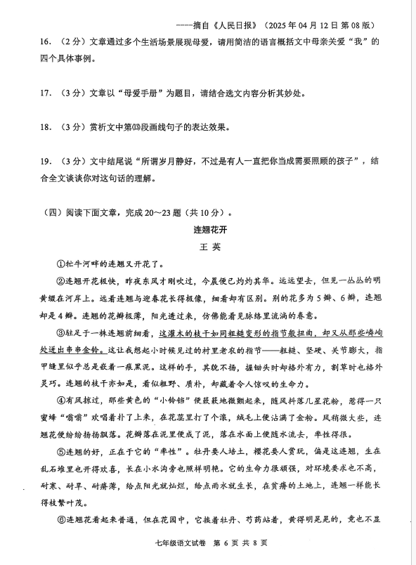 2024-2025学年湖北襄阳枣阳市七年级下册语文期末真题(图片版)(6)