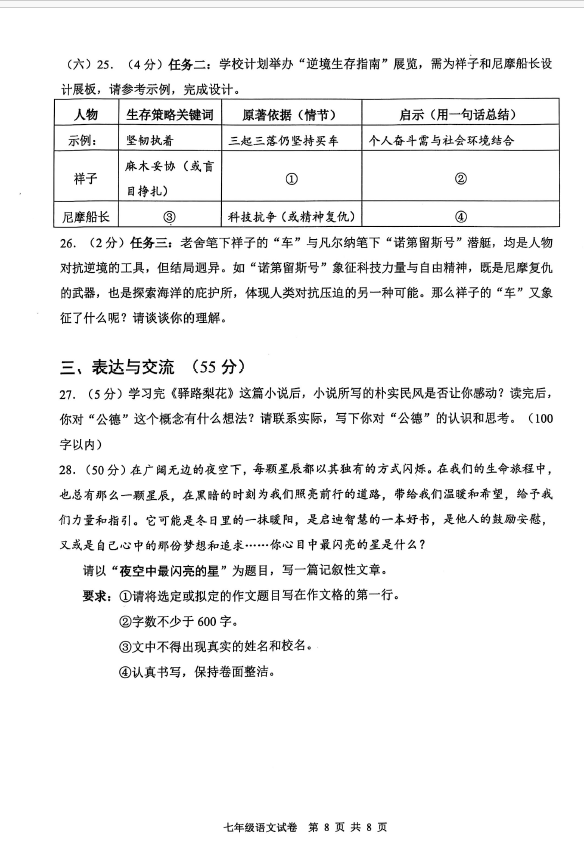 2024-2025学年湖北襄阳枣阳市七年级下册语文期末真题(图片版)(8)