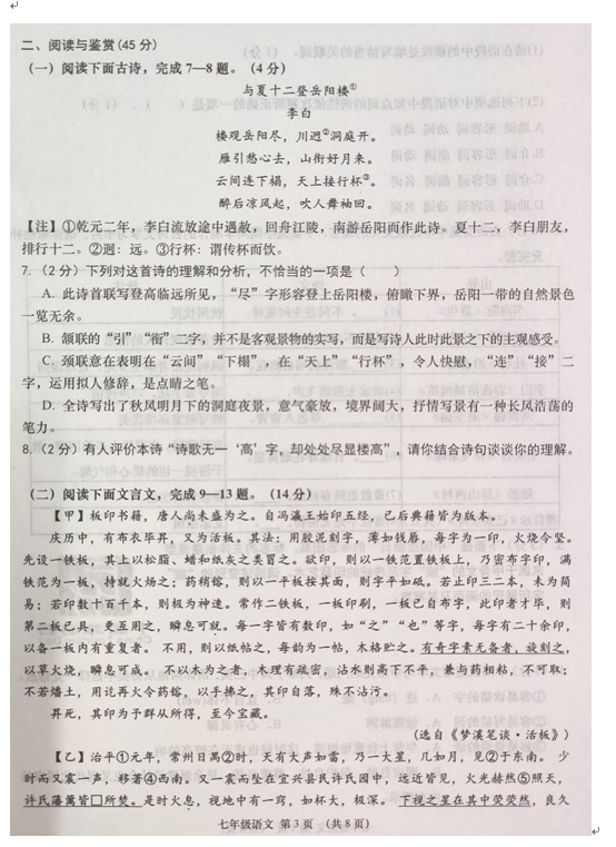 2024-2025学年湖北孝感云梦县七年级下册语文期末真题(图片版)(3)