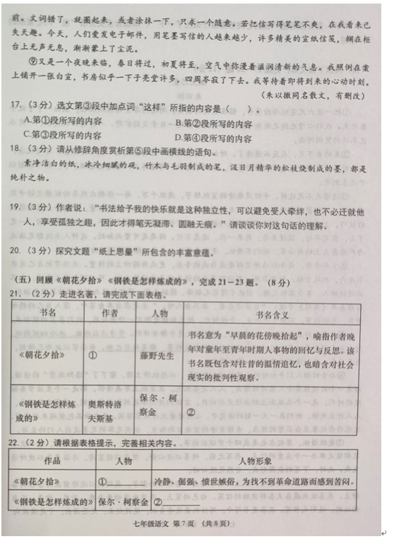 2024-2025学年湖北孝感云梦县七年级下册语文期末真题(图片版)(7)