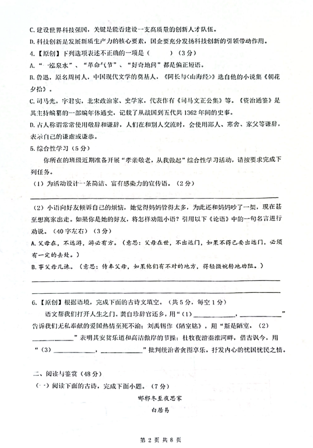 2024-2025学年湖南衡阳一中七年级下册语文期末真题(图片版)(2)
