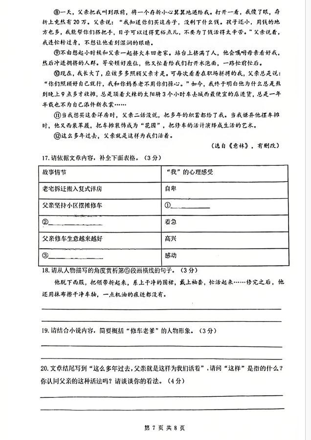 2024-2025学年湖南衡阳一中七年级下册语文期末真题(图片版)(7)