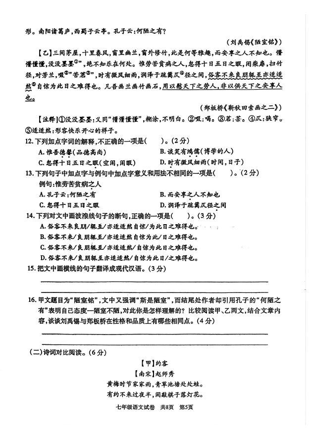 2024-2025学年湖南娄底涟源七年级下册语文期末真题(图片版)(5)