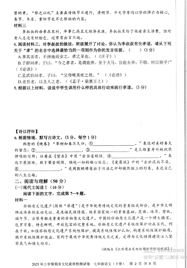2024-2025学年湖南娄底娄星区七年级下册语文期末真题(图片版)(2)