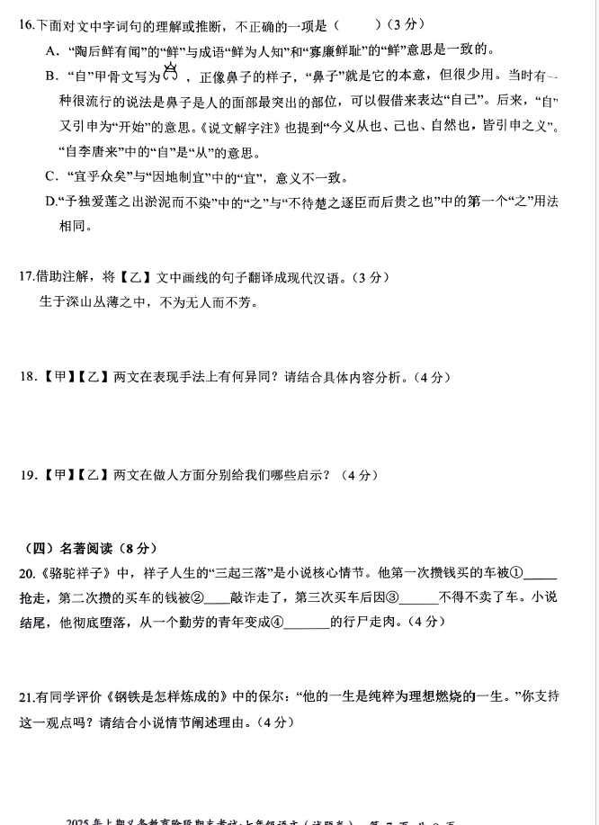 2024-2025学年湖南永州零陵区七年级下册语文期末真题(图片版)(7)