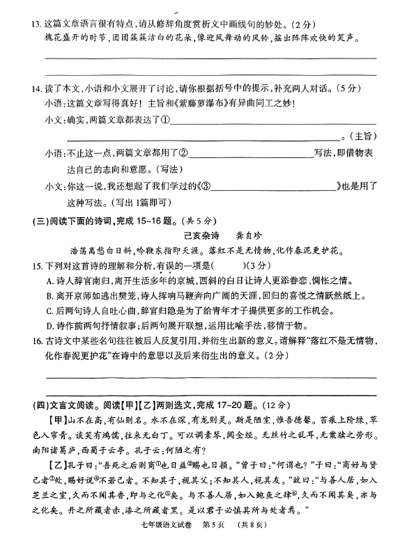2024-2025学年湖南岳阳临湘市七年级下册语文期末真题(图片版)(5)