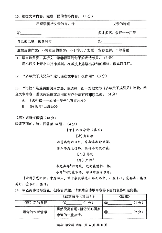 024-2025学年湖南岳阳汨罗市七年级下册语文期末真题(图片版)(6)