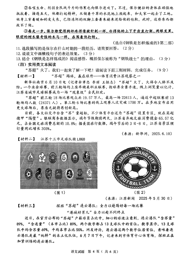 于2024-2025学年江苏连云港灌云县七年级下册语文期末真题(图片版)(4)