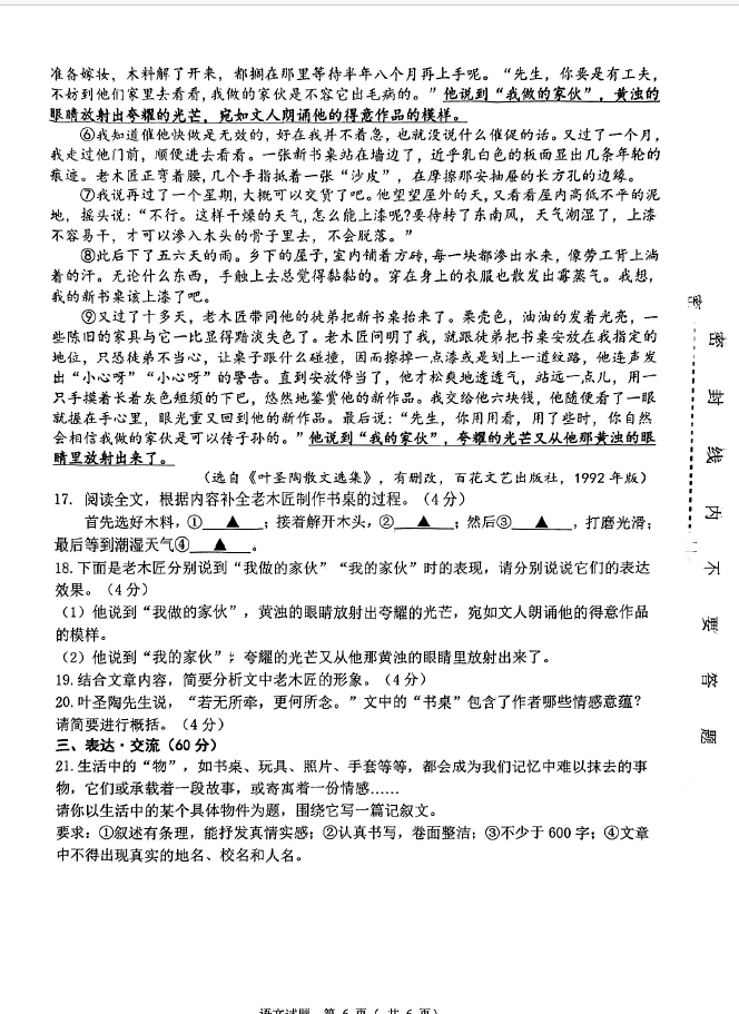 于2024-2025学年江苏连云港灌云县七年级下册语文期末真题(图片版)(6)