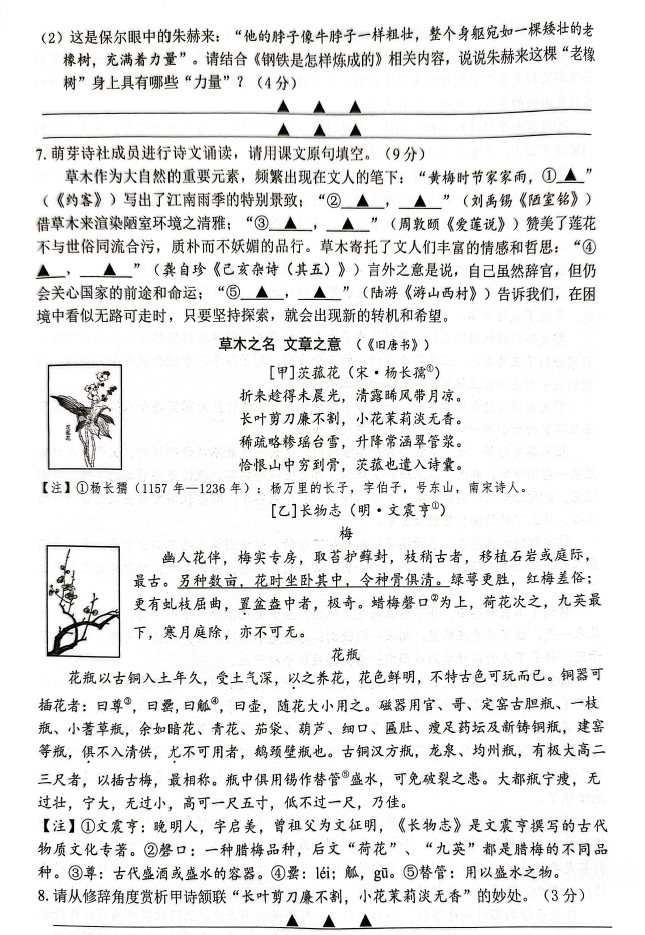 2024-2025学年江苏南通市直联考七年级下册语文期末真题(图片版)(2)