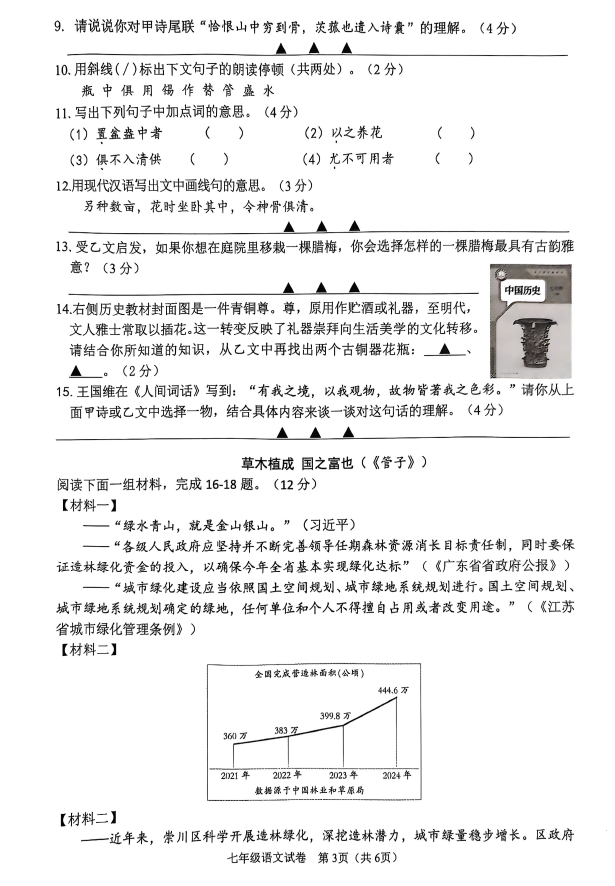 2024-2025学年江苏南通市直联考七年级下册语文期末真题(图片版)(3)