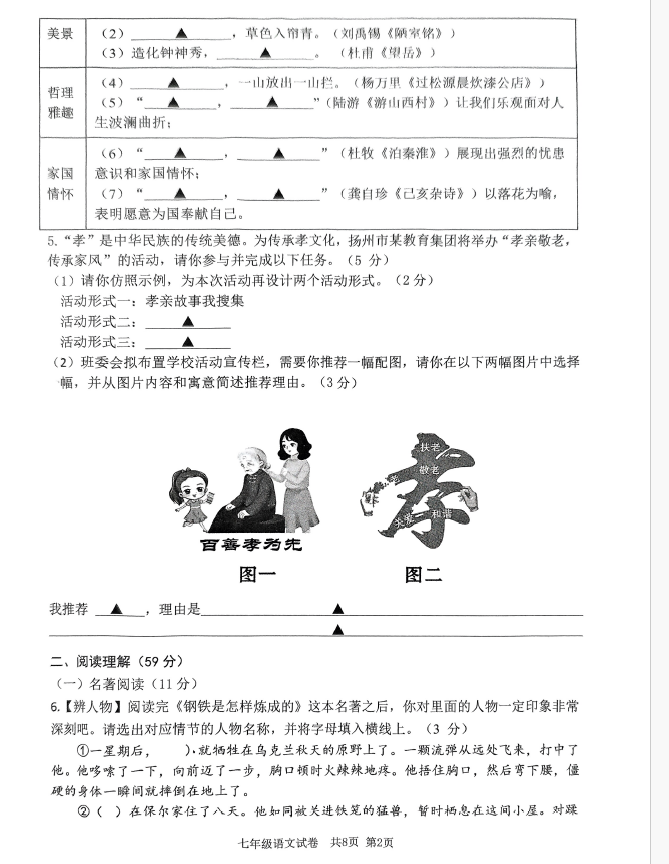 2024-2025学年江苏扬州树人集团七年级下册语文期末真题(图片版)(2)