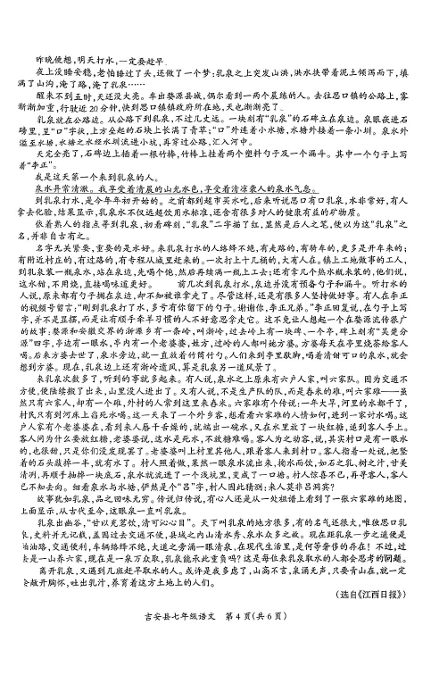 2024-2025学年江西吉安吉安县七年级下册语文期末真题(图片版)(4)