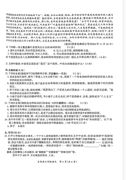 2024-2025学年江西吉安吉安县七年级下册语文期末真题(图片版)(6)