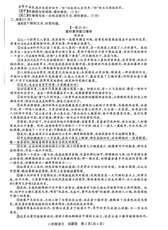 2024-2025学年安徽阜阳太和县联考八年级下学期语文期末真题(图片版)(2)