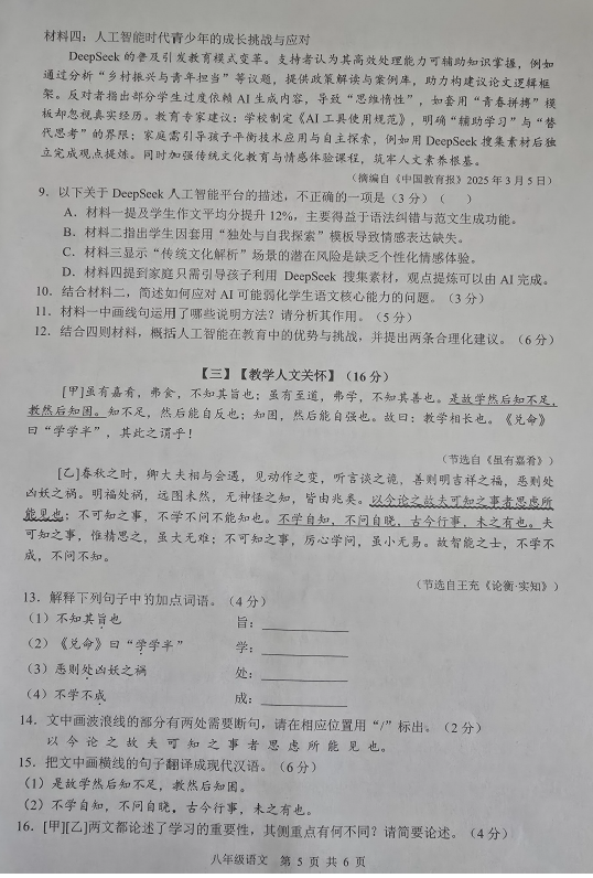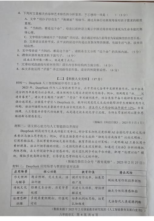 2024-2025学年安徽合肥肥西县八年级下学期语文期末真题(图片版)(4)