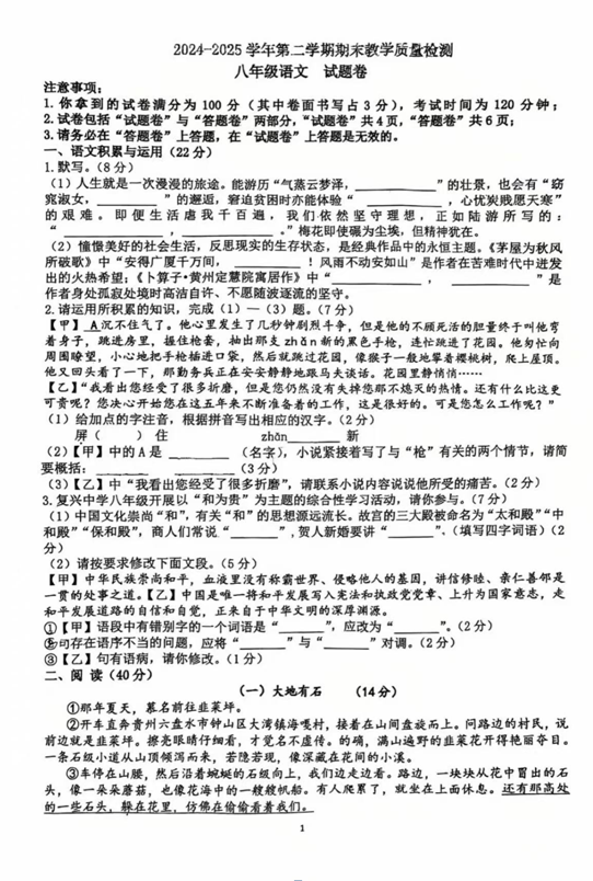 2024-2025学年安徽合肥四十六中八年级下学期语文期末真题(图片版)