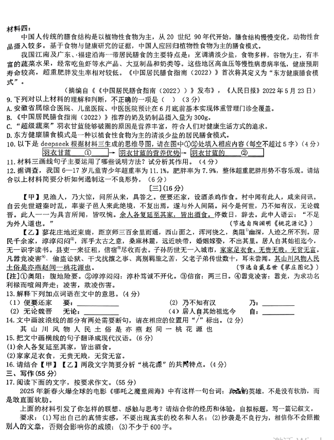 2024-2025学年安徽铜陵枞阳县八年级下学期语文期末真题(图片版)(4)
