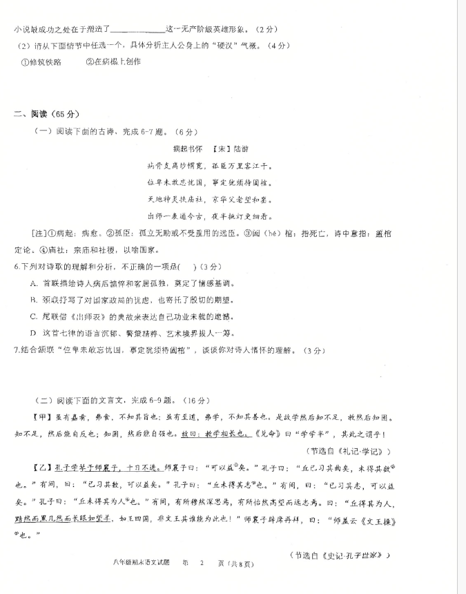 2024-2025学年福建福州金山中学八年级下学期语文期末真题(图片版)(2)