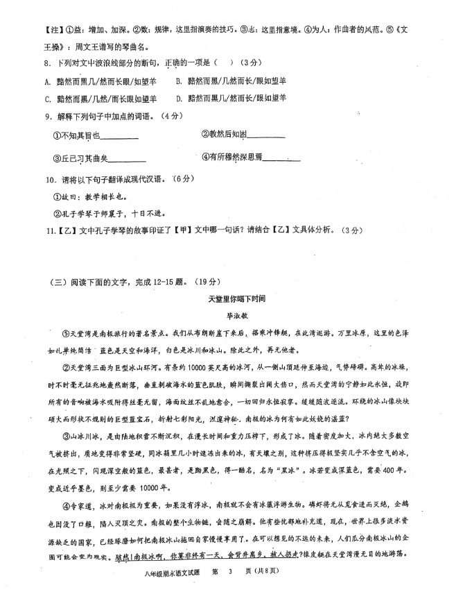 2024-2025学年福建福州金山中学八年级下学期语文期末真题(图片版)(3)