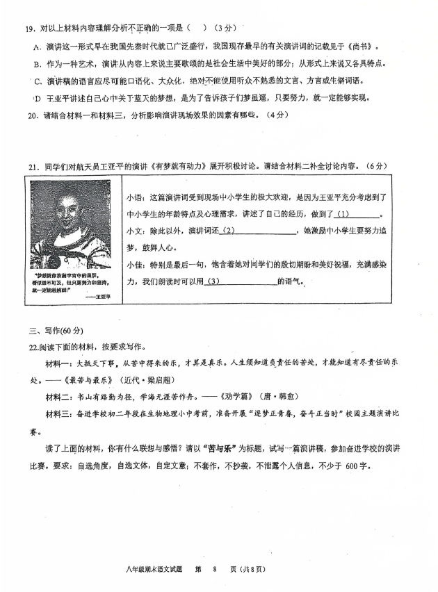 2024-2025学年福建福州金山中学八年级下学期语文期末真题(图片版)(8)