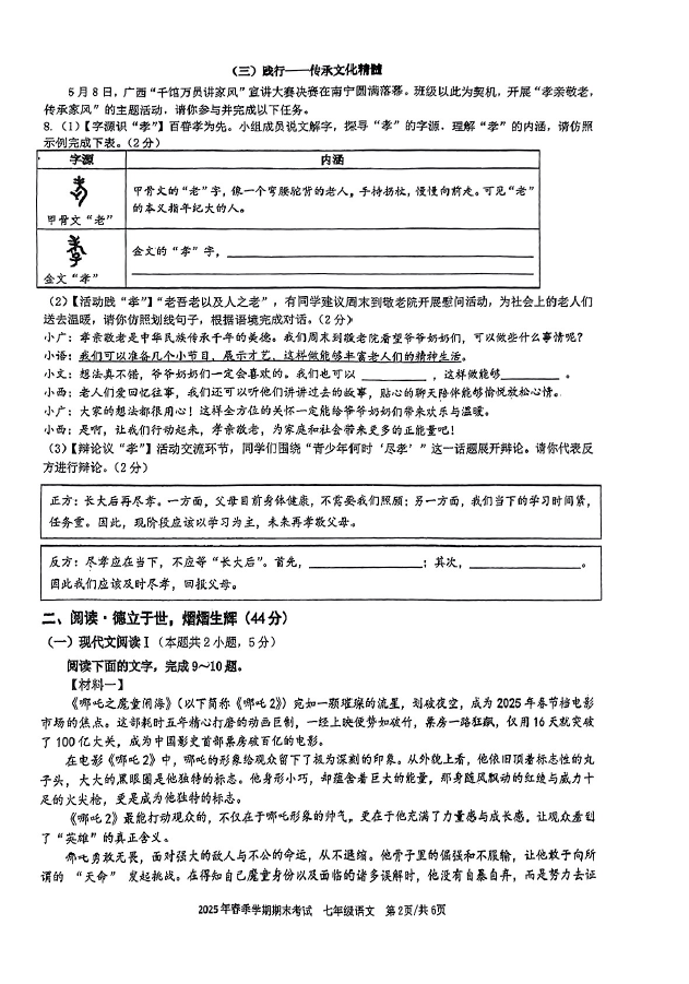 2024-2025学年广西南宁天桃实验学校八年级下学期语文期末真题(图片版)(2)
