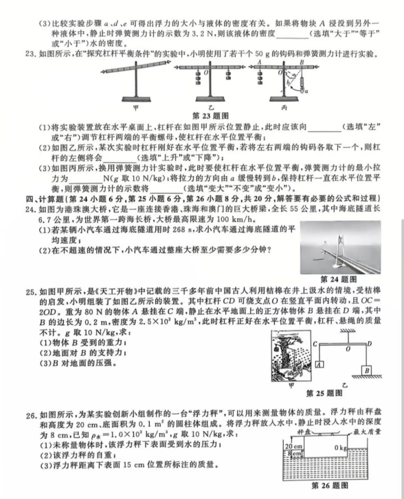 2024-2025学年安徽亳州八年级下册物理期末真题(图片版)(4)
