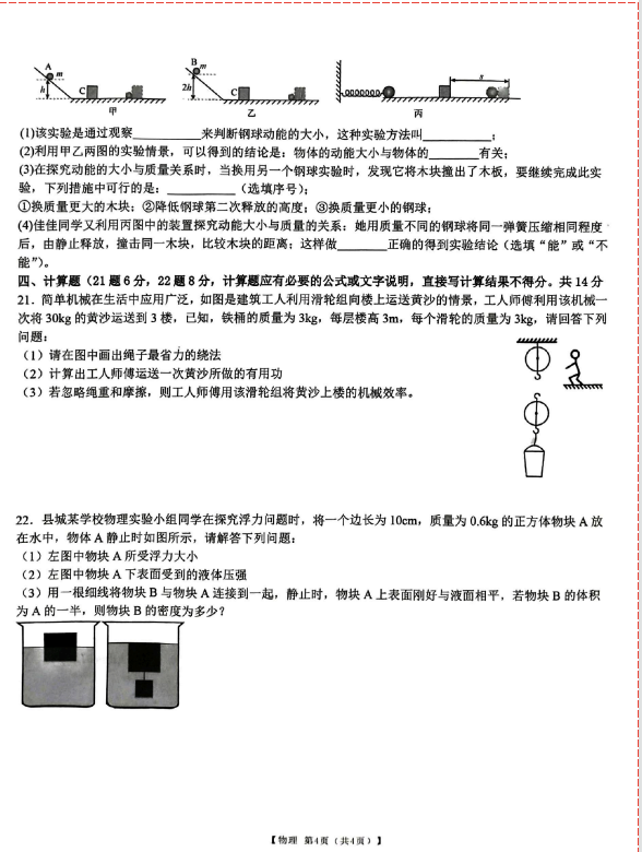 2024-2025学年安徽宿州萧县八年级下册物理期末真题(图片版)(4)