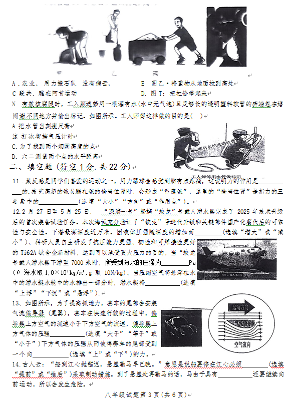 2024-2025学年甘肃白银十一中八年级下册物理期末真题(图片版)(3)