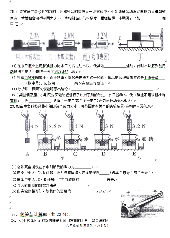 2024-2025学年甘肃白银十一中八年级下册物理期末真题(图片版)(5)