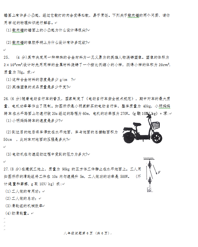 2024-2025学年甘肃白银十一中八年级下册物理期末真题(图片版)(6)