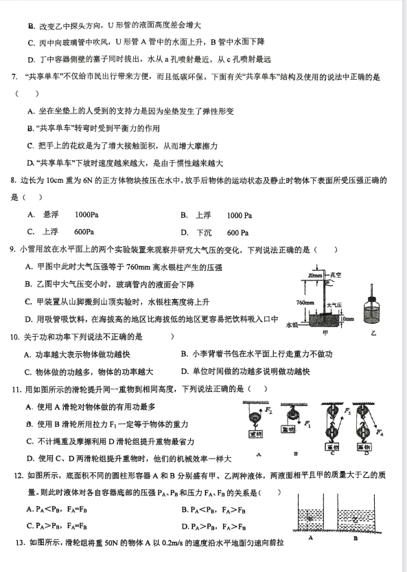 2024-2025学年甘肃白银十中八年级下册物理期末真题(图片版)(2)