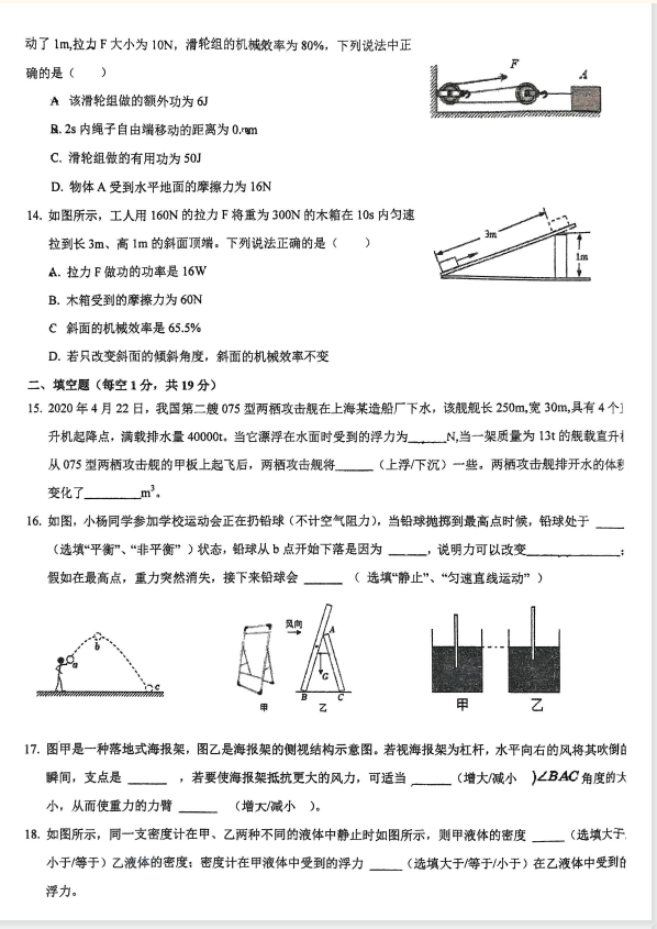 2024-2025学年甘肃白银十中八年级下册物理期末真题(图片版)(3)