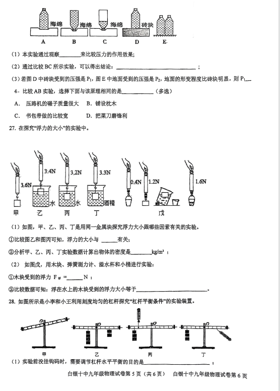 2024-2025学年甘肃白银十中八年级下册物理期末真题(图片版)(5)