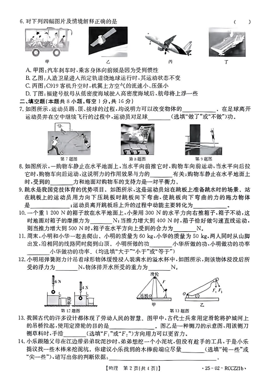 2024-2025学年甘肃定西安定区八年级下册物理期末真题(图片版)(2)