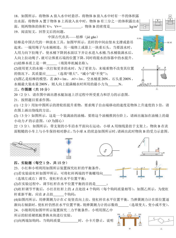 2024-2025学年甘肃兰州城关区天庆实验中学八年级下册物理期末真题(图片版)(3)
